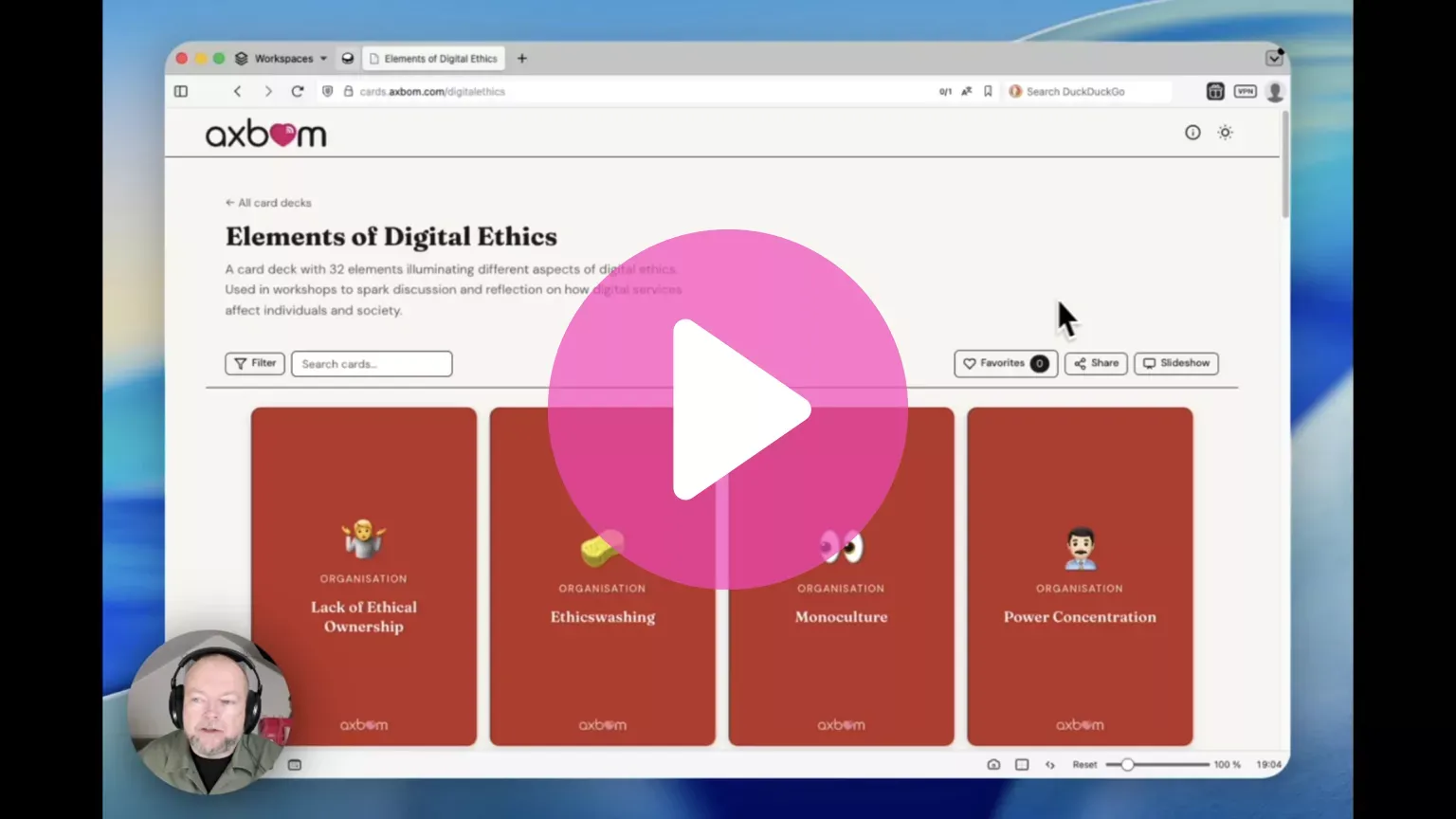 You can visit cards.axbom.com and you'll find two sets of cards already there, The Elements of Digital Ethics and 13 Principles for Good Technology. Jump on over there if you want, but I do recommend first watching my quick video introducing the features of the website.